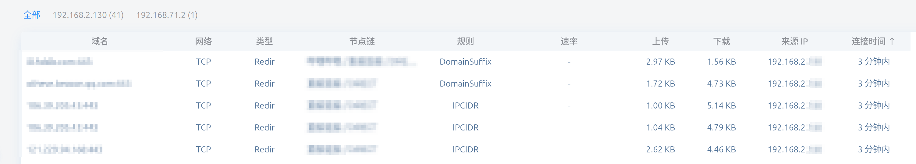 在openclash的后台看一下就会发现,openclash识别的ip全是路由器的ip。
