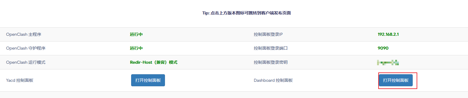 启动完成后可以点击打开控制面板,就能通过界面选择节点
