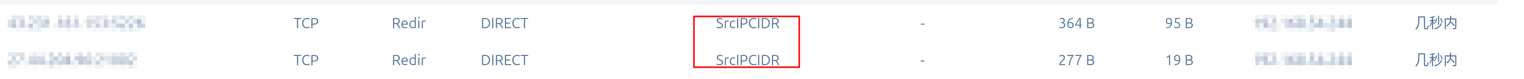 看看clash日志,可以看到规则这里显示的是我们配置的SrcIPCIDR,说明规则是生效的。