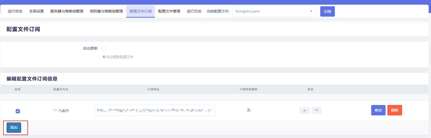 添加好后拉到最底下点击应用配置就会自动启动clash