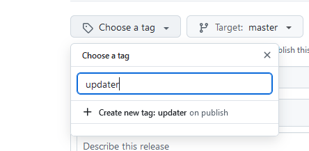 在 GitHub Release 里新增一个 tag 为 updater 的 Release 进入 release 页点击这个按钮 新增一个 tag 为 updater 的 Release 将其设为 pre-release