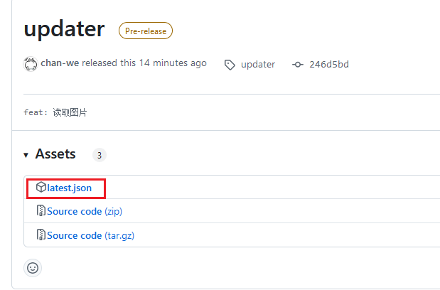 现在去运行一下 GitHub Action 这样就能够在构建完成后将latest.json文件更新到 updater Release 中 复制lastest.json的链接,并将其填入 endpoints 中,就能实现新版本的检查